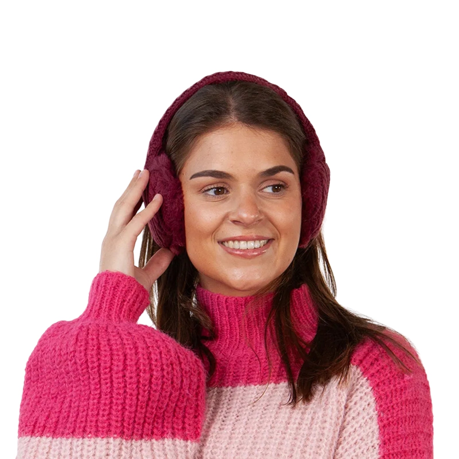 - Knitted earmuffs lined with soft faux fur
