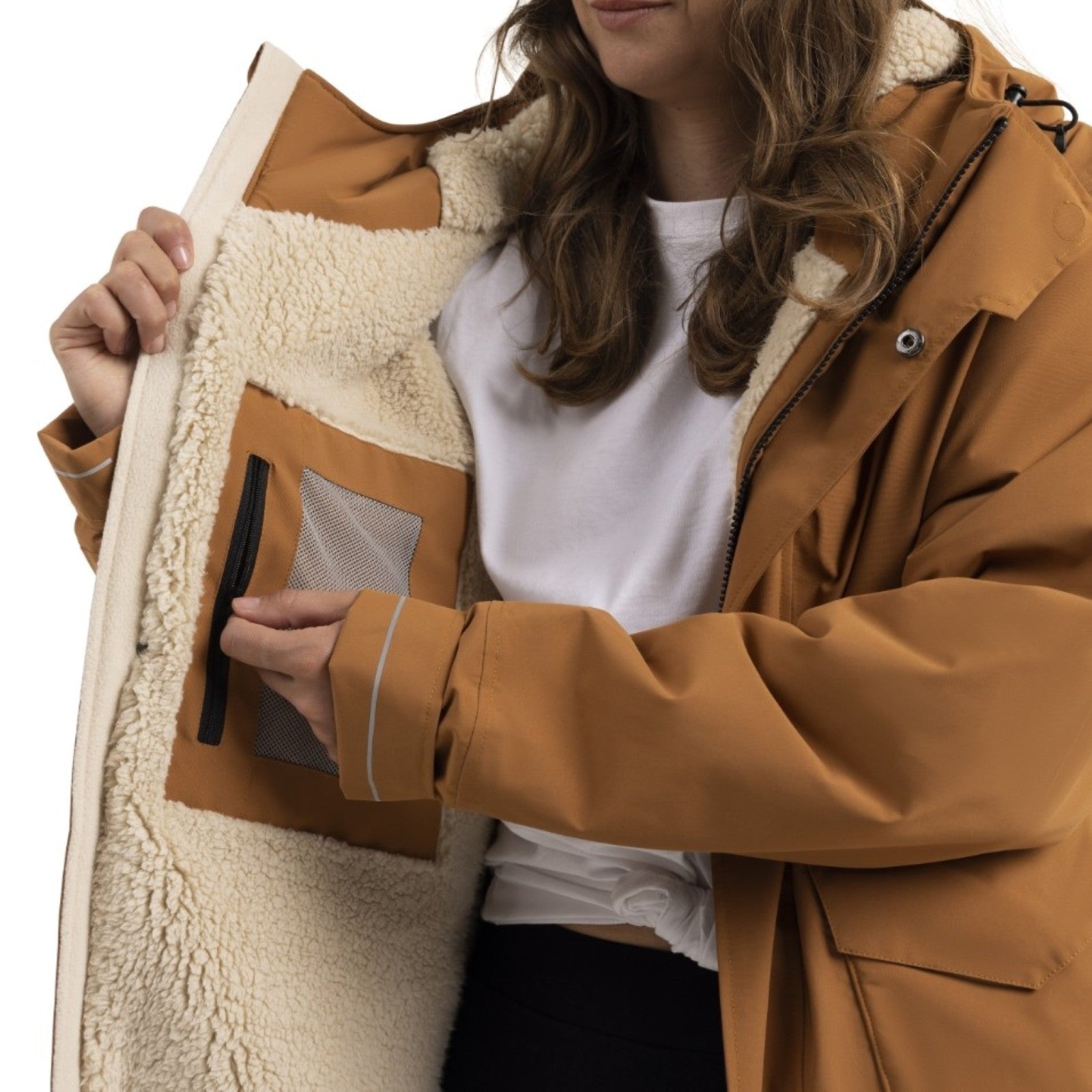 - Practical pockets: waterproof chest, fleece-lined hand warmers, plus internal water bottle / underwear stash