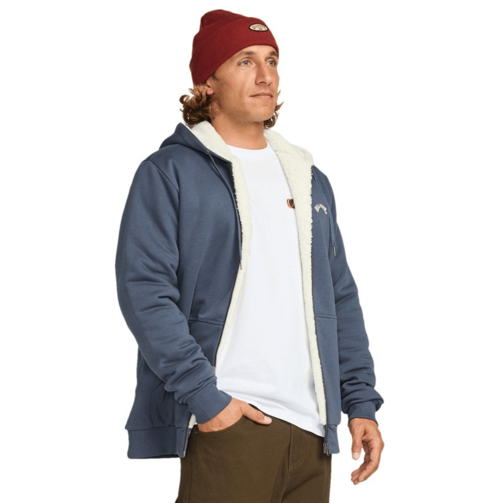 • Billabong "arch" logo embroidery at chest, woven label