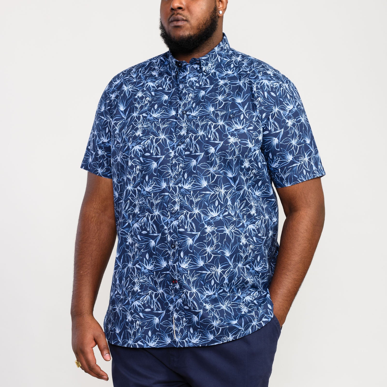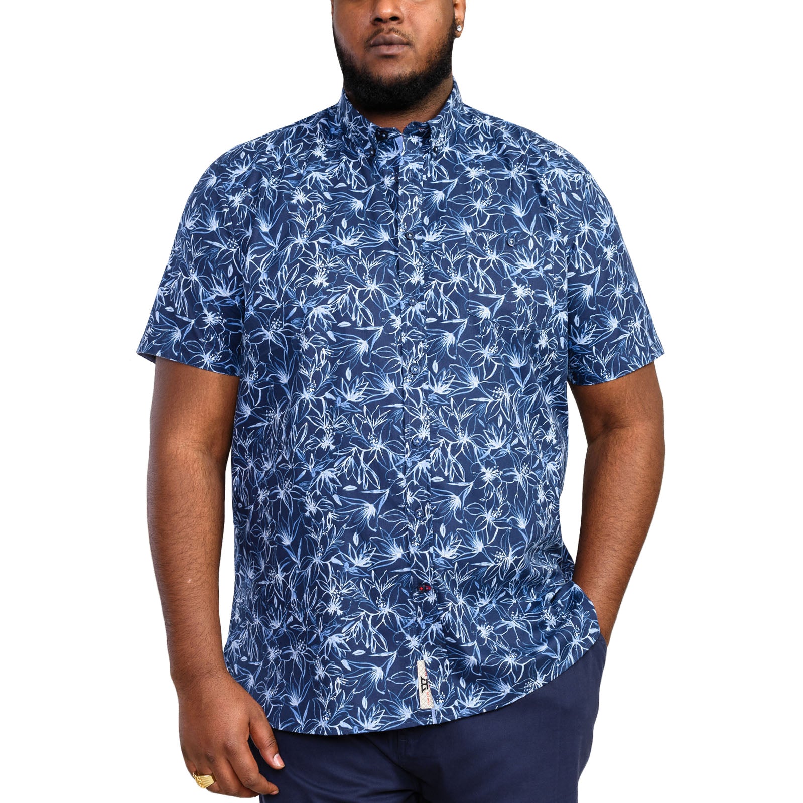 D555 Mens Padbury Big & Tall Floral Short Sleeve Shirt - Navy