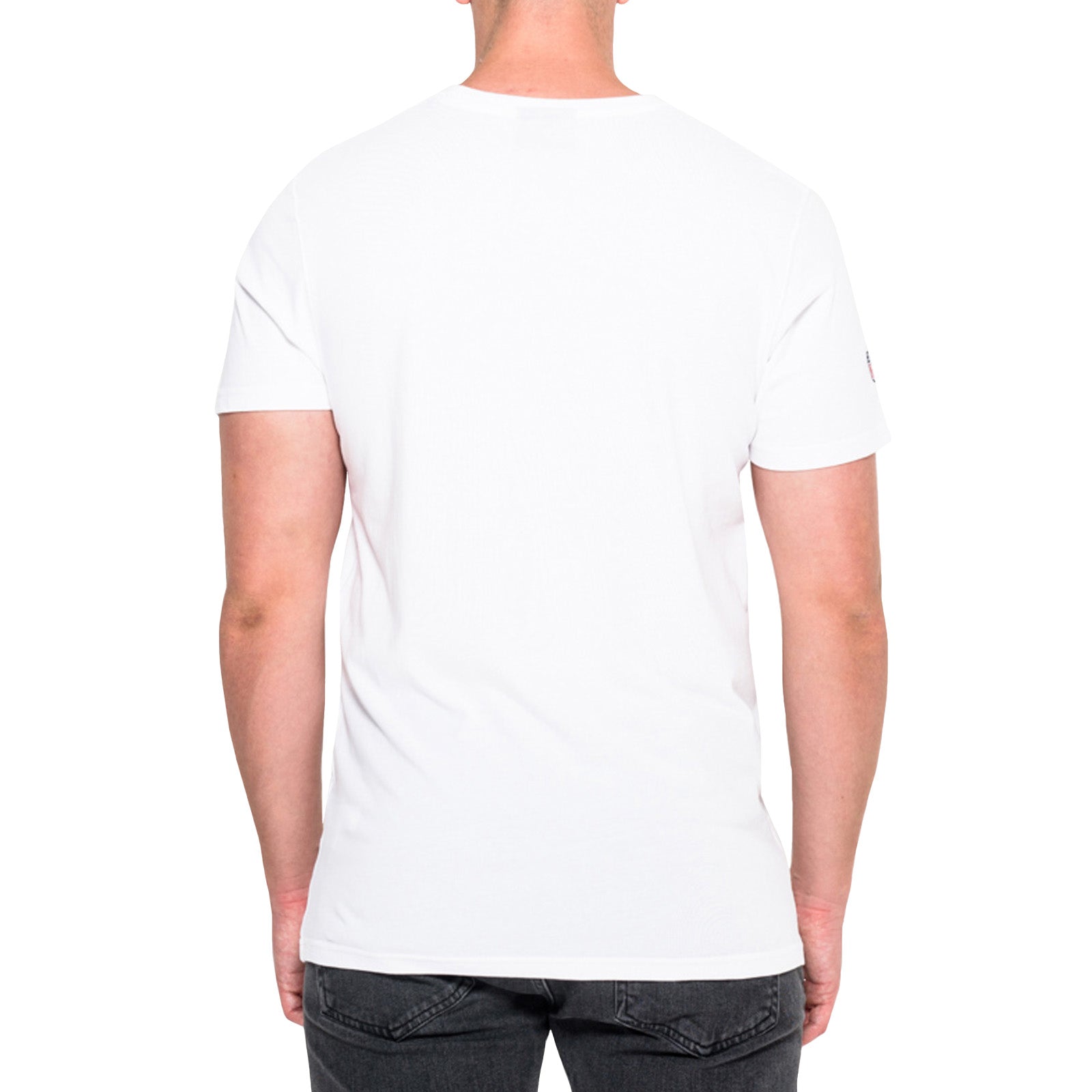 - Team logo print at center front and embroidered flag to the left sleeve