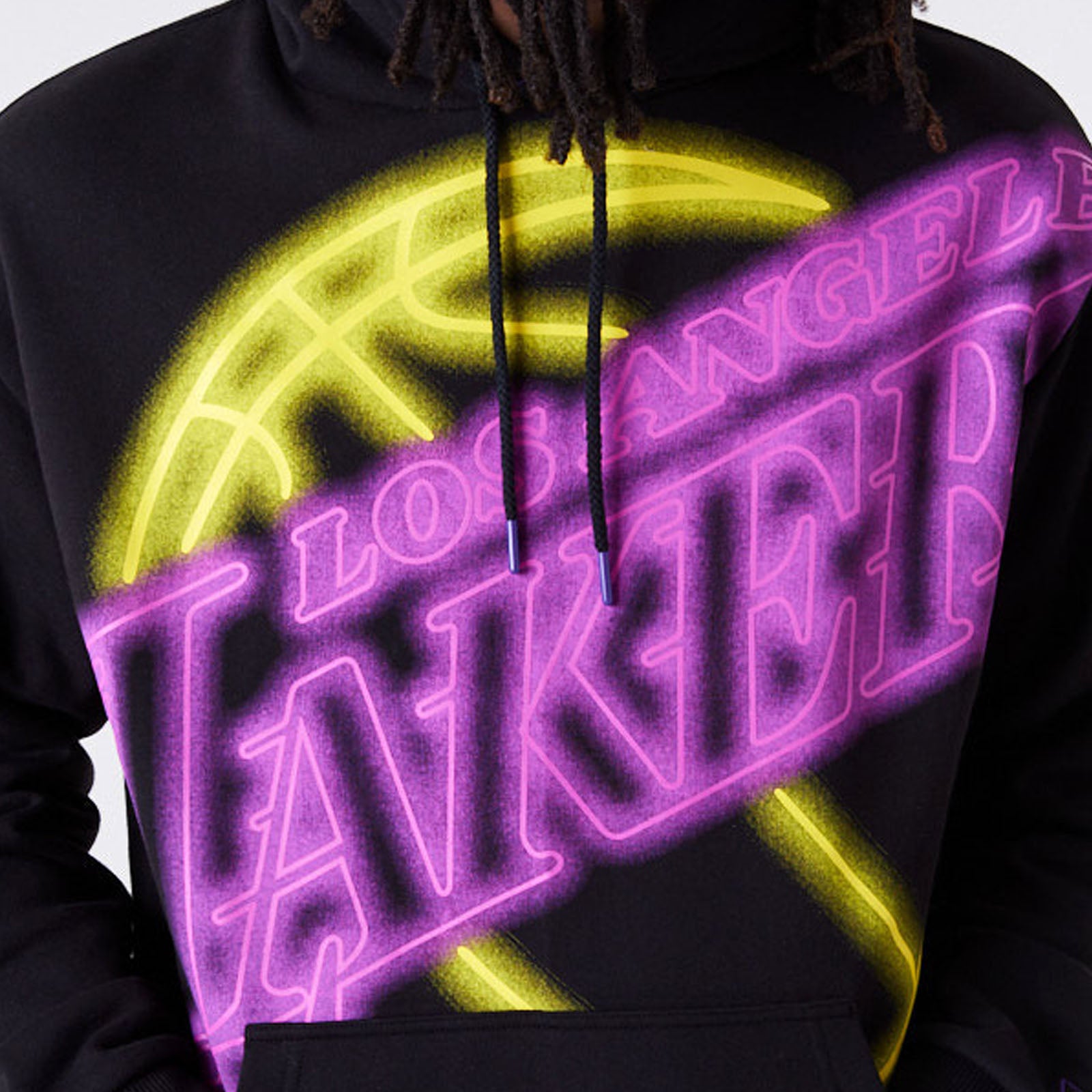 New Era Mens LA Lakers NBA Neon Team Logo Hoodie - Black