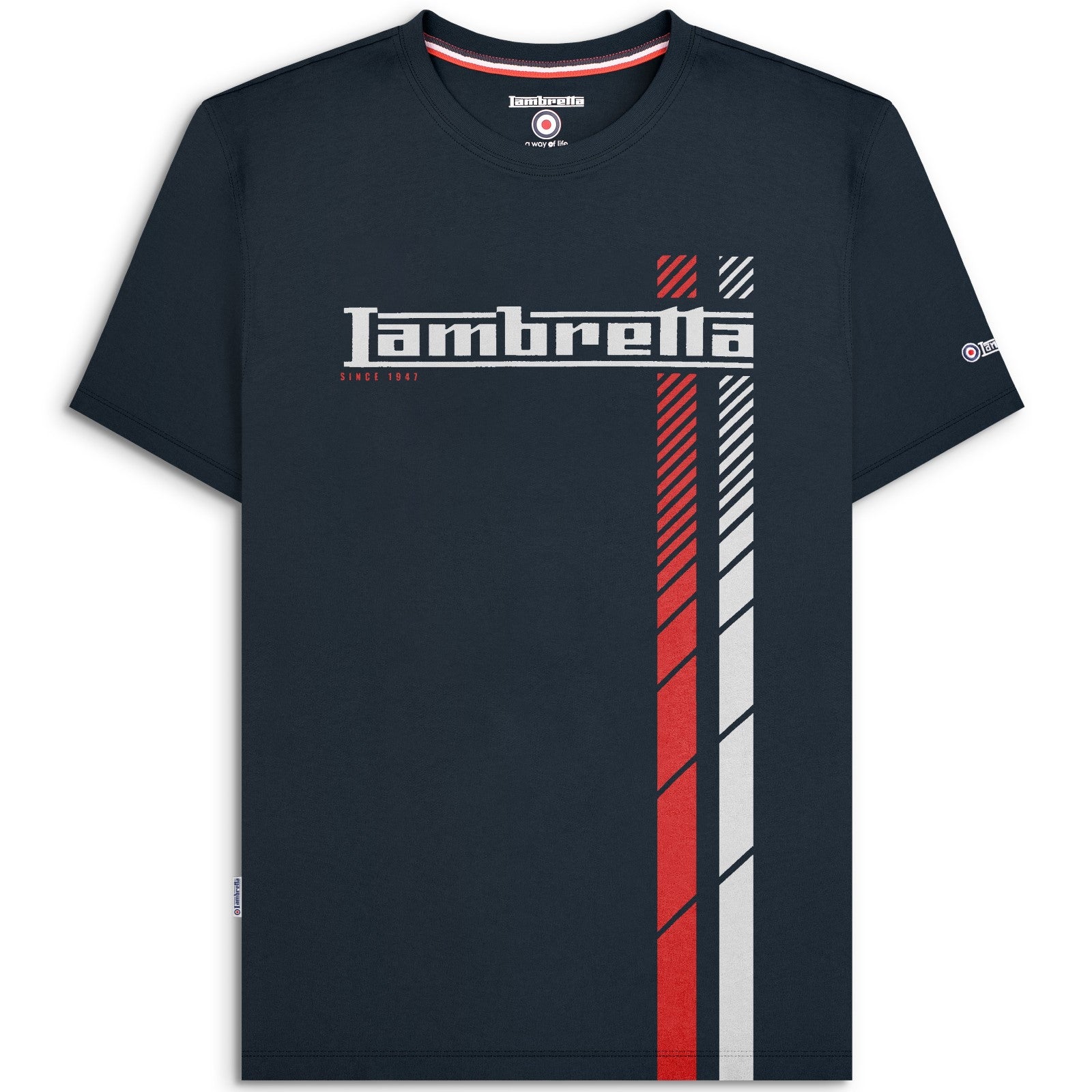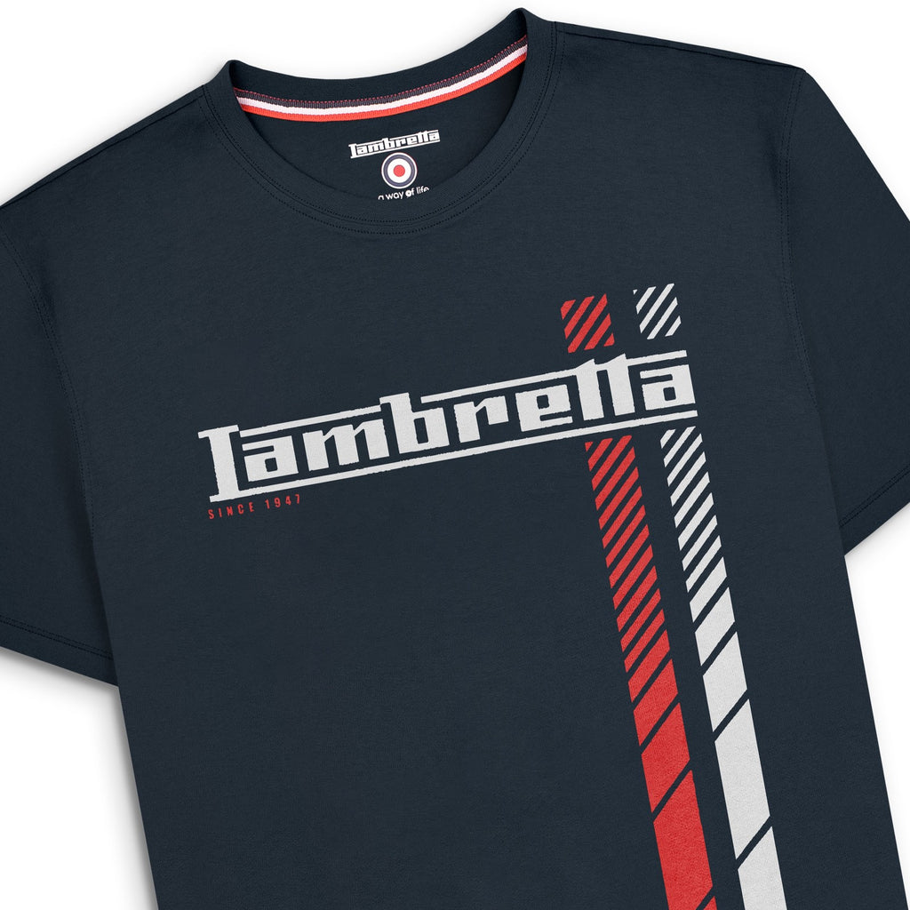 Lambretta Mens Fade Racing Stripe Short Sleeve T-Shirt