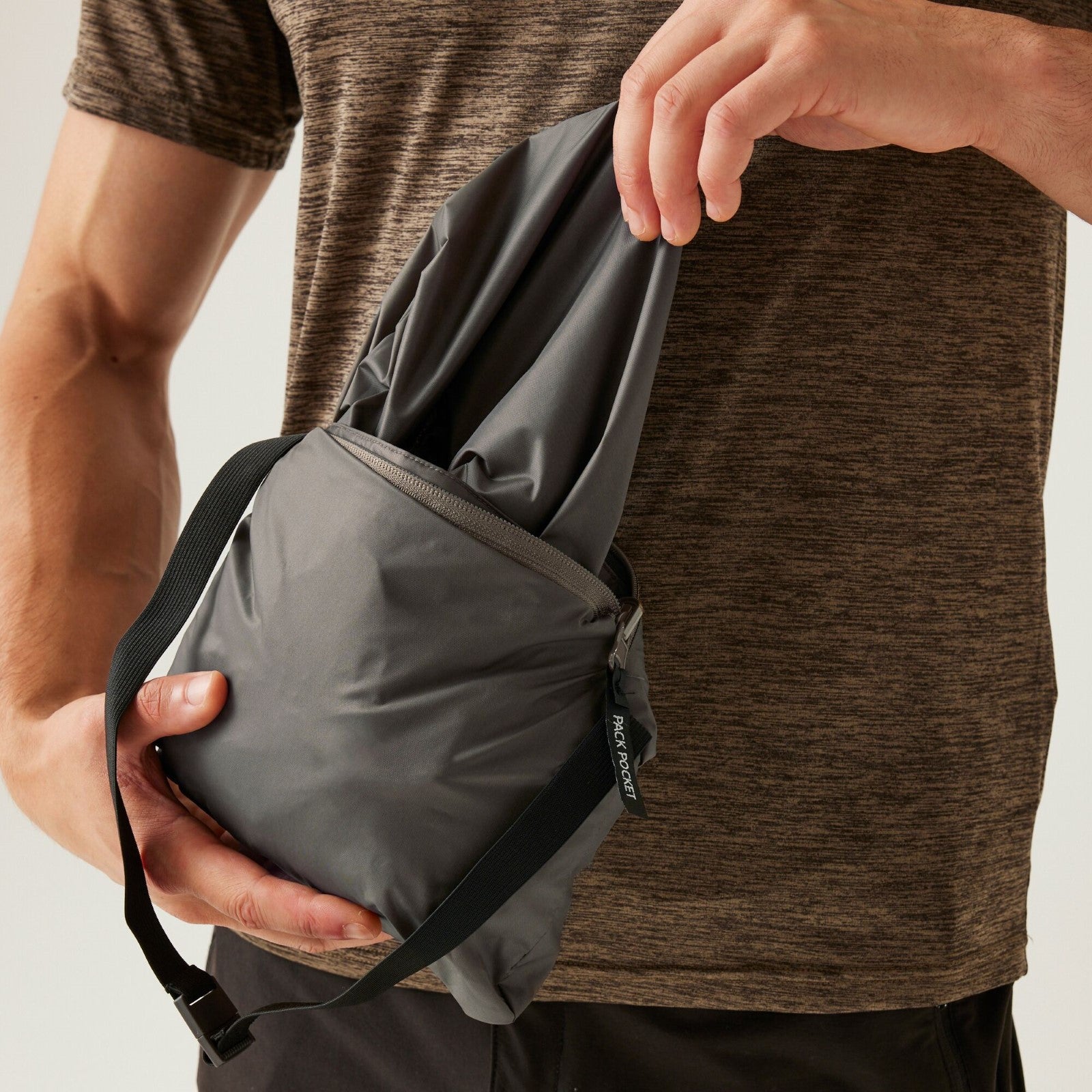 - Packaway - lower left side pocket converts into belt bag