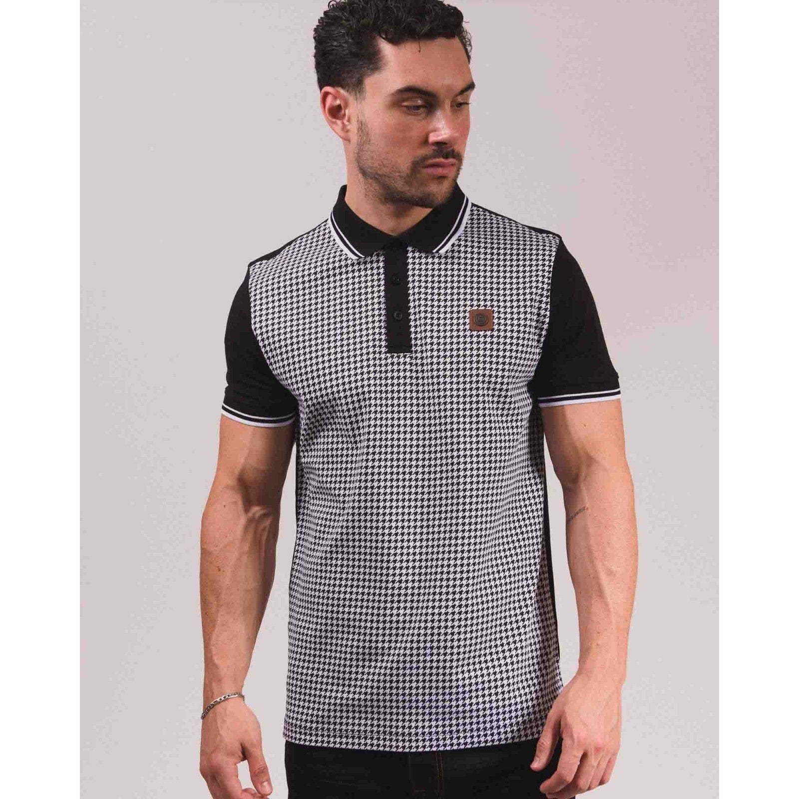 Lambretta Mens Houndstooth Short Sleeve Polo Shirt