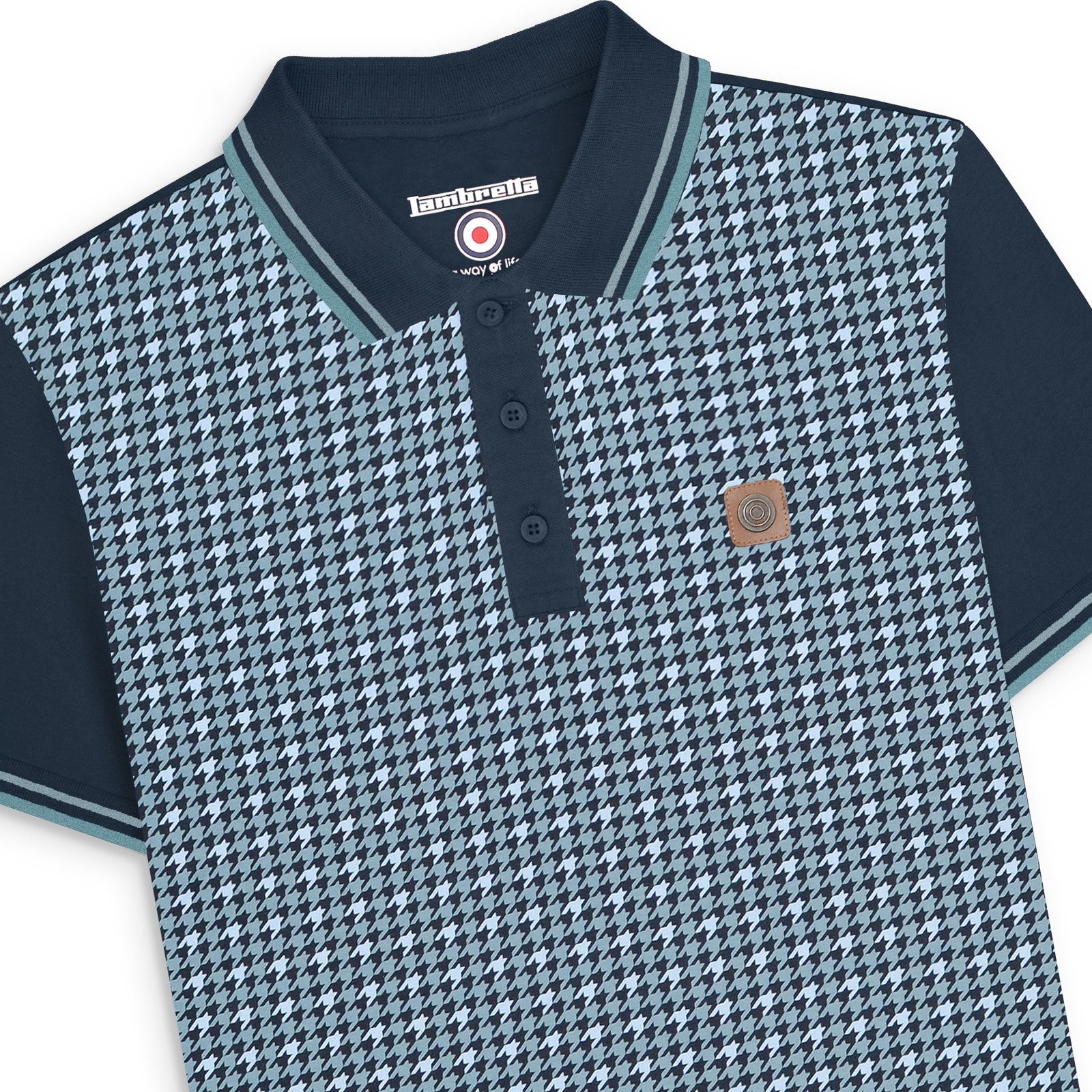 Lambretta Mens Houndstooth Short Sleeve Polo Shirt