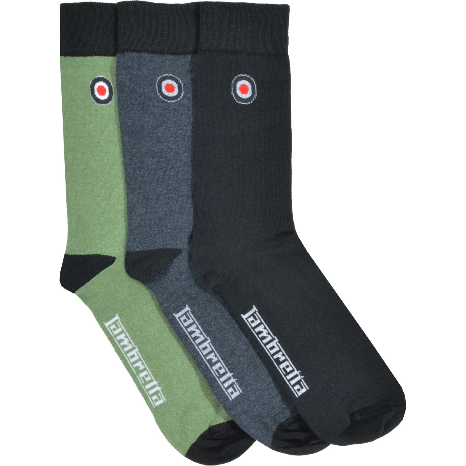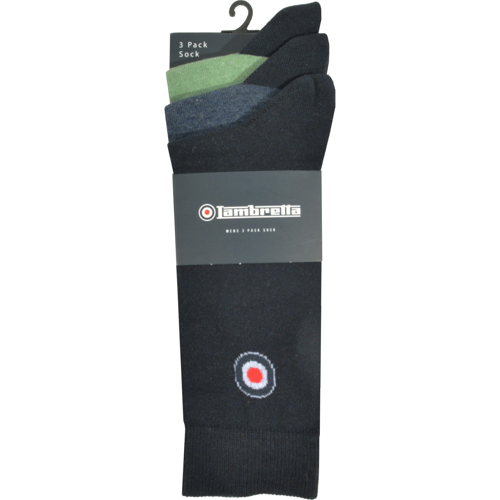 Lambretta Mens Classic 3 Pack Crew Socks - Navy Blue/Green - OS