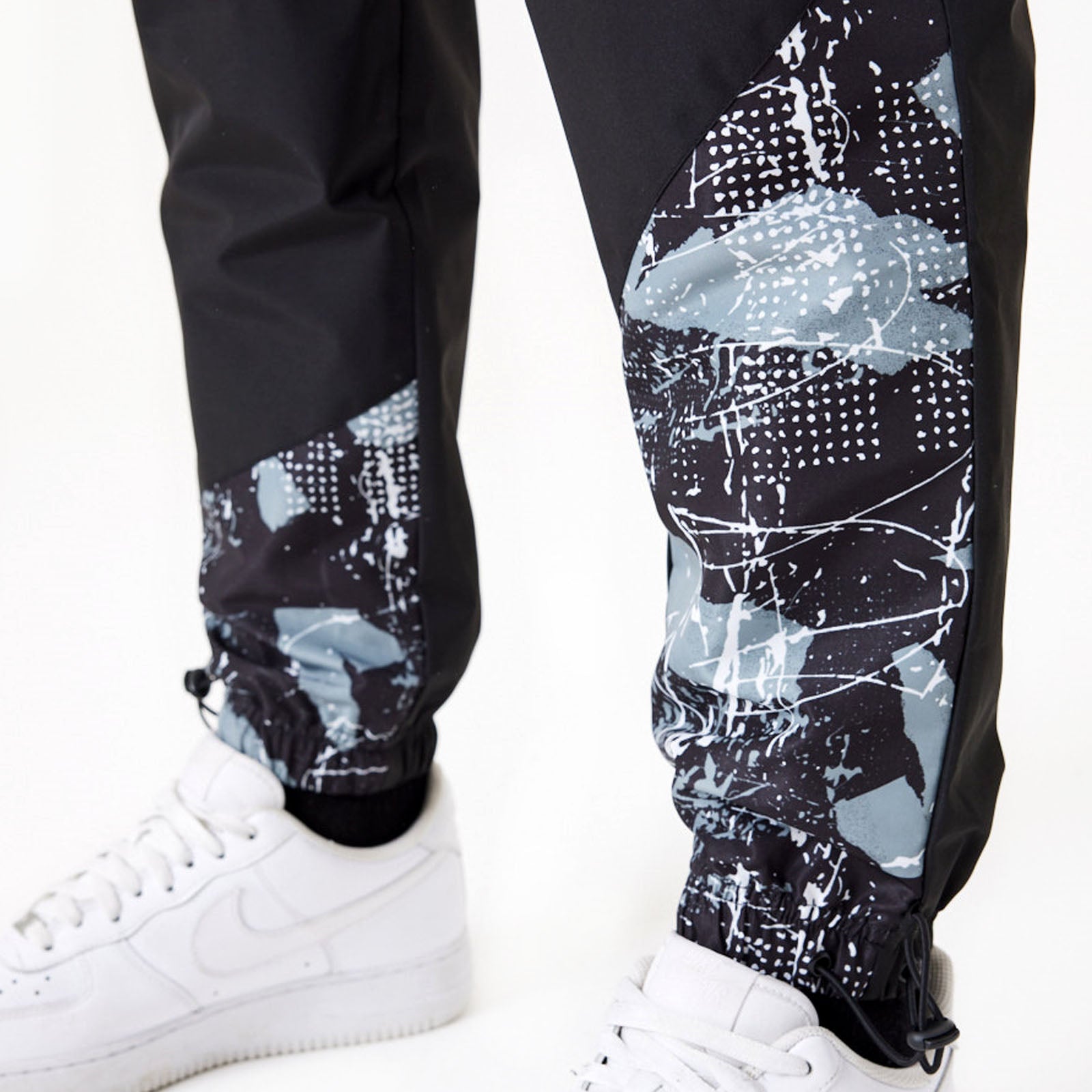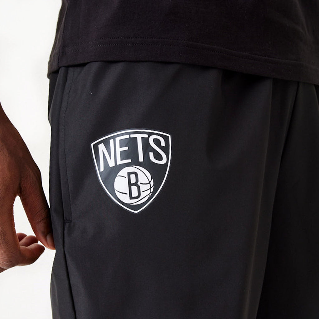 New Era Mens Brooklyn Nets All Over Pattern Panel Joggers - Black