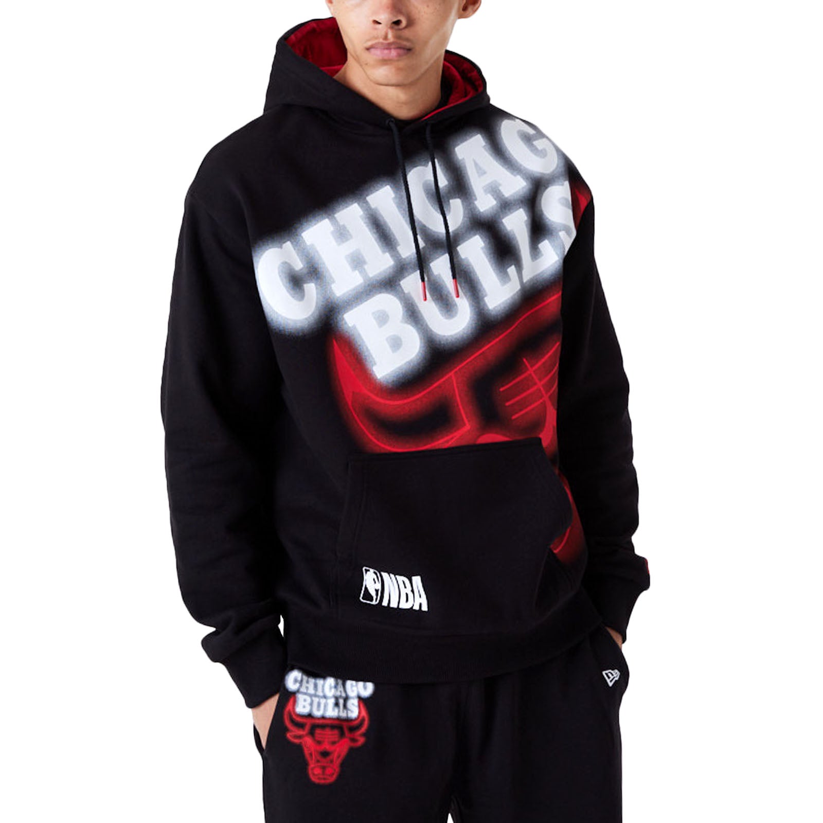 New Era Mens Chicago Bulls NBA Neon Team Logo Hoodie - Black