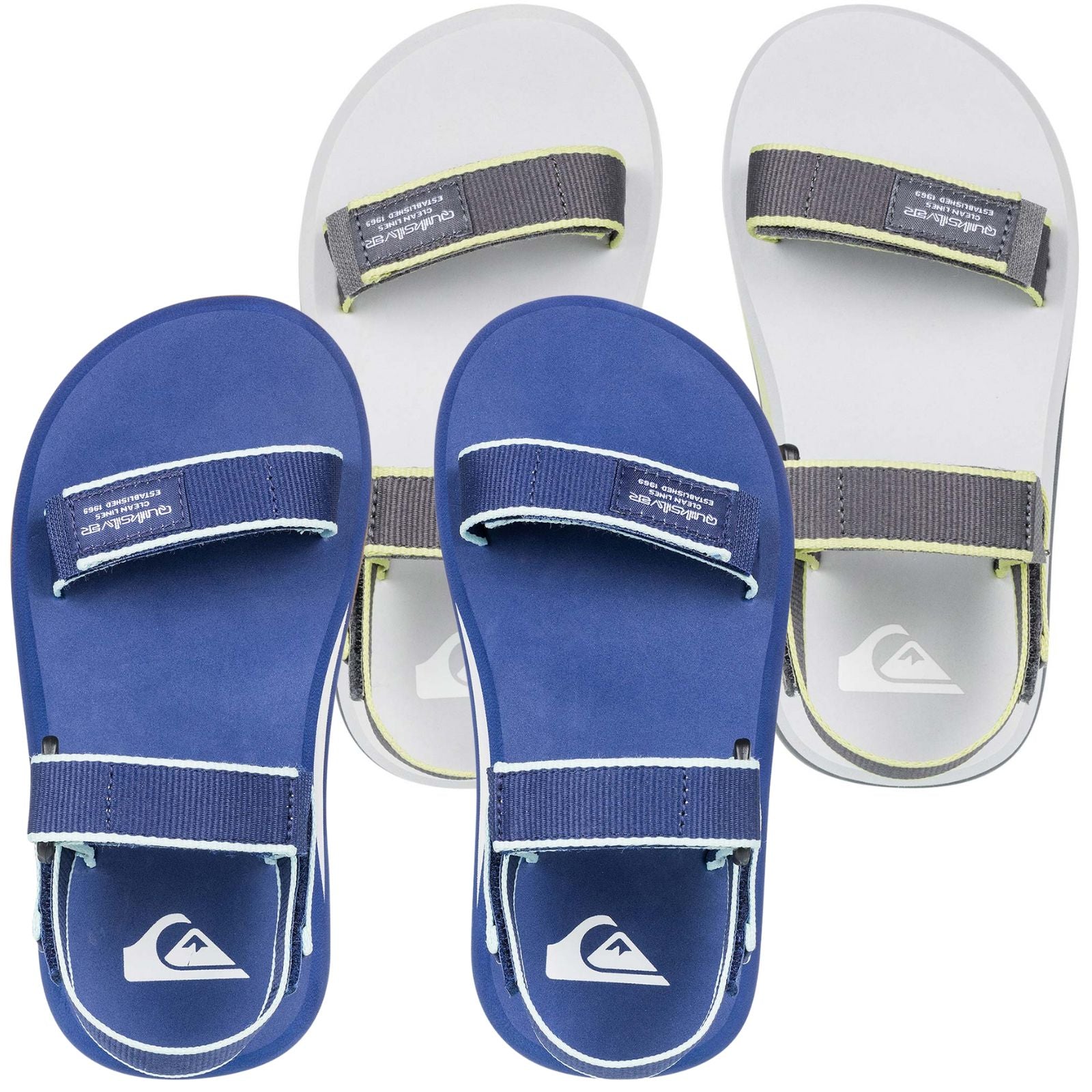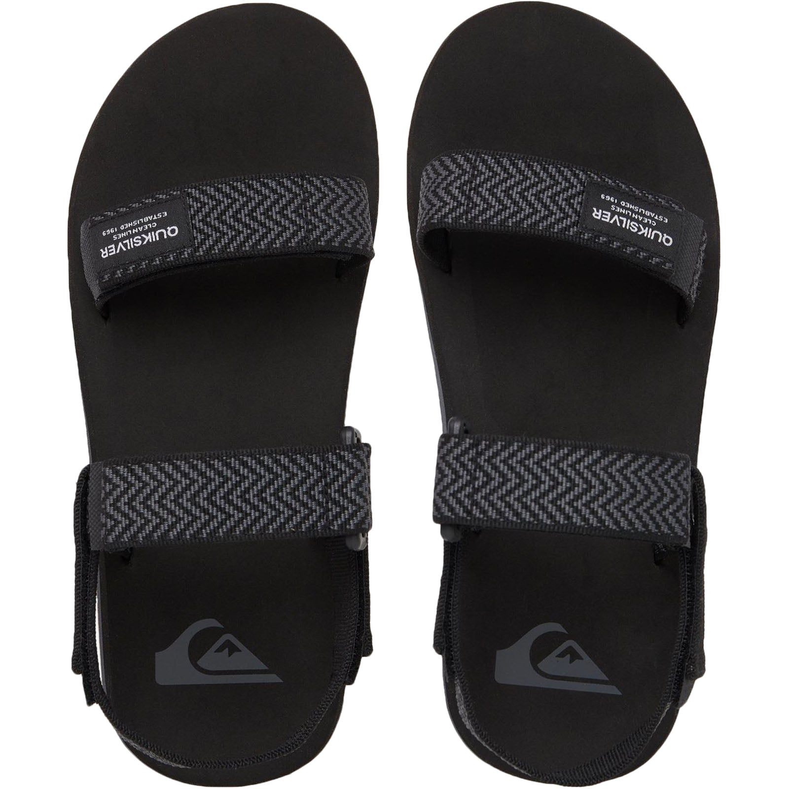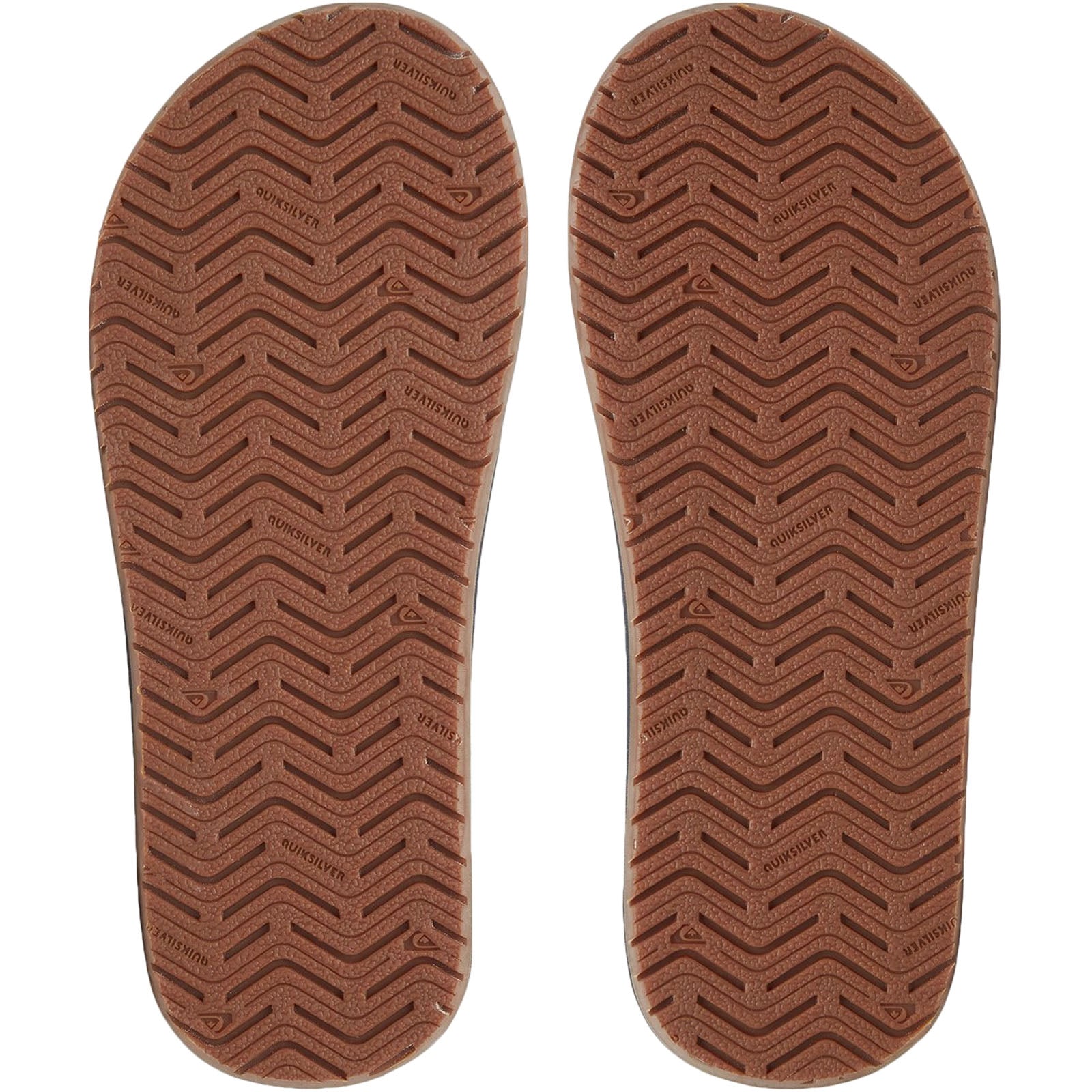 - Quiksilver logos in a multi-width herringbone tread on a durable rubber outsole