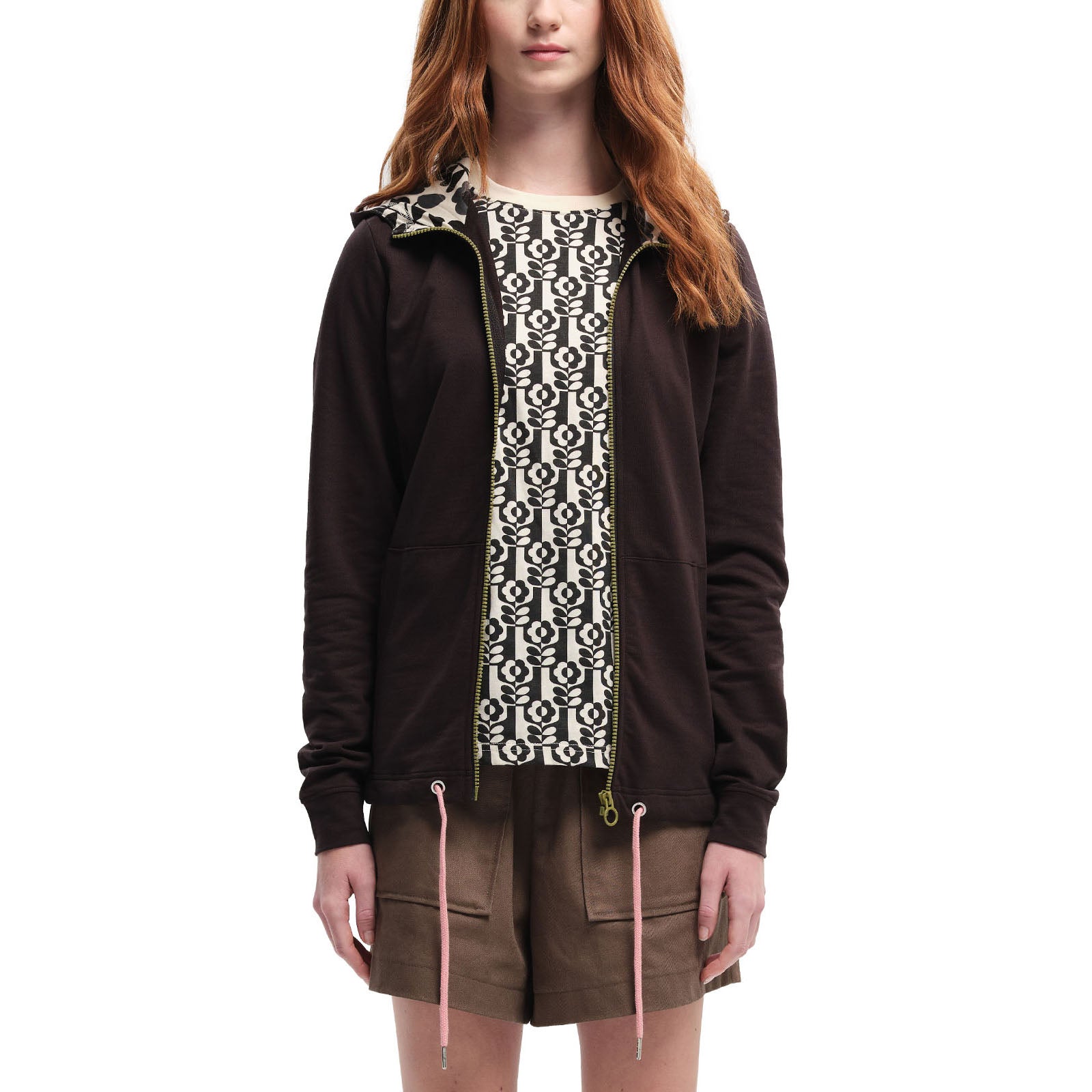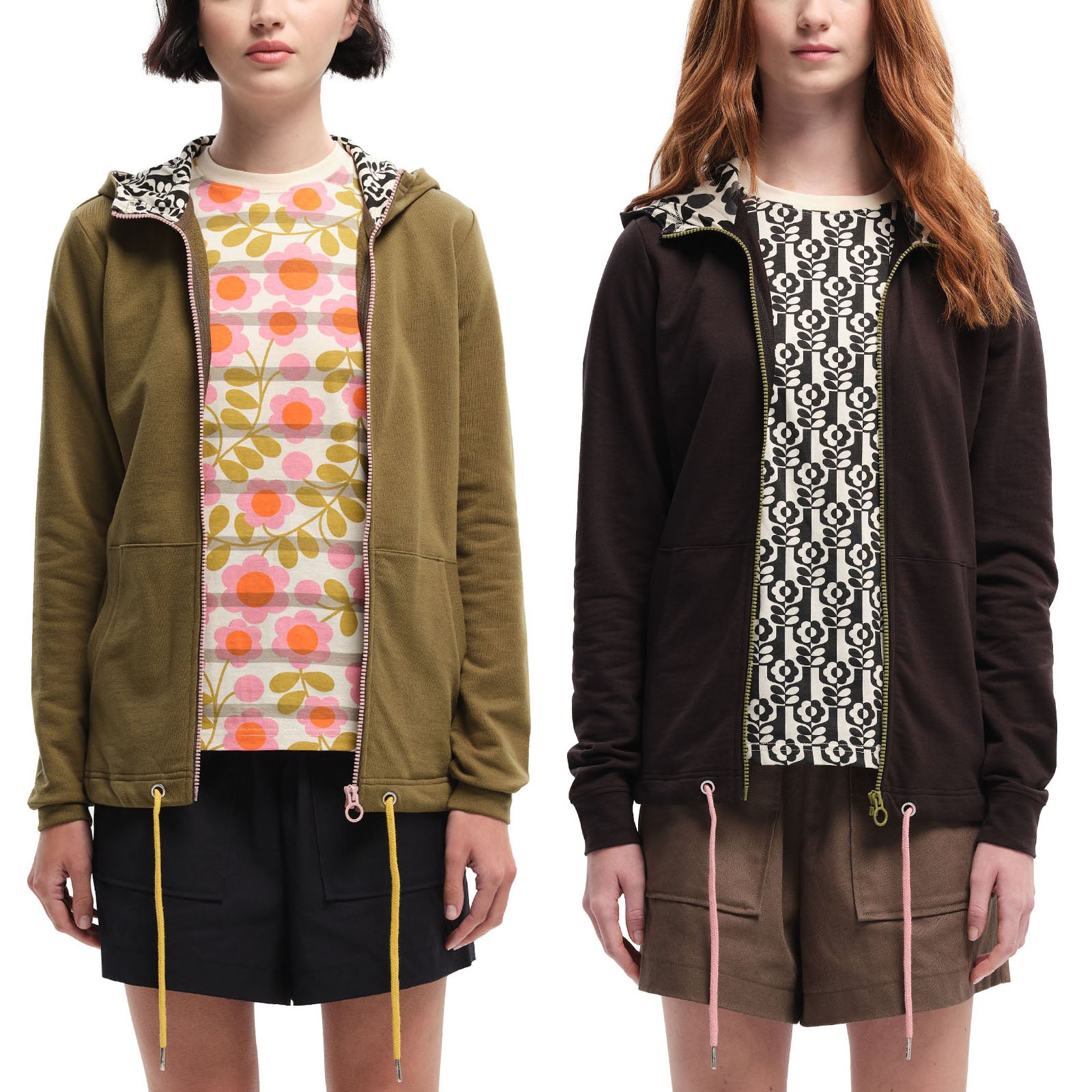 - Grown on hood, lined with a classic Orla floral print