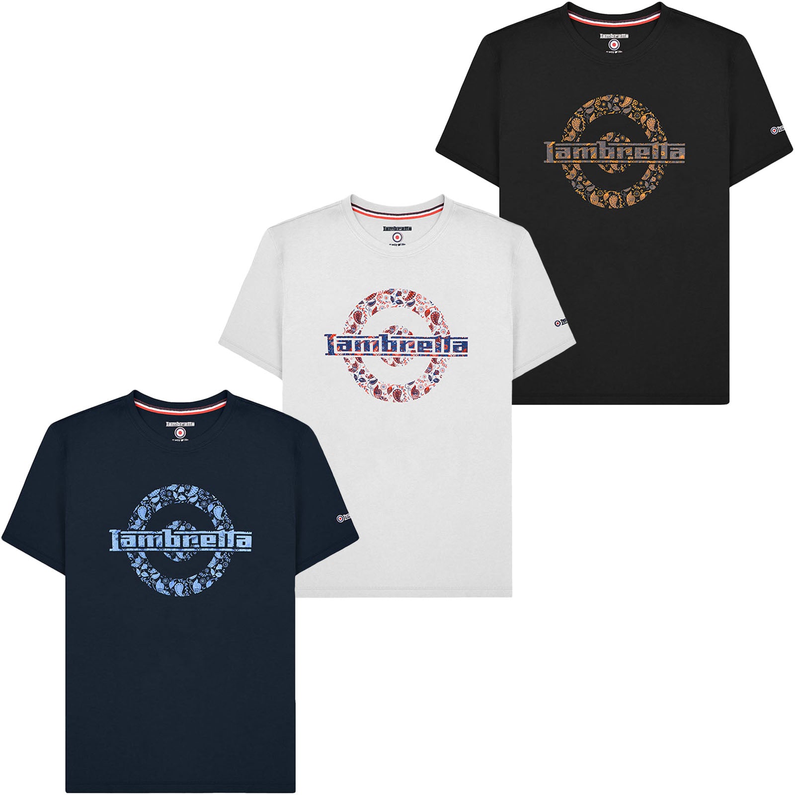 Lambretta Mens Paisley Logo Crew Neck T-Shirt