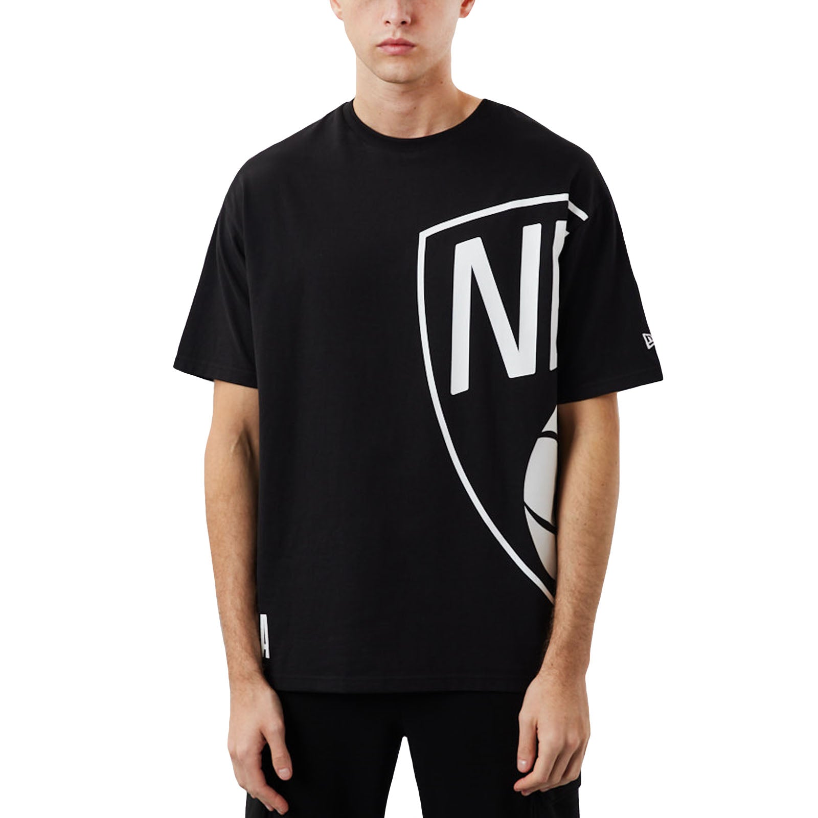 New Era Mens Brooklyn Nets Half Logo Oversized T-Shirt - Black
