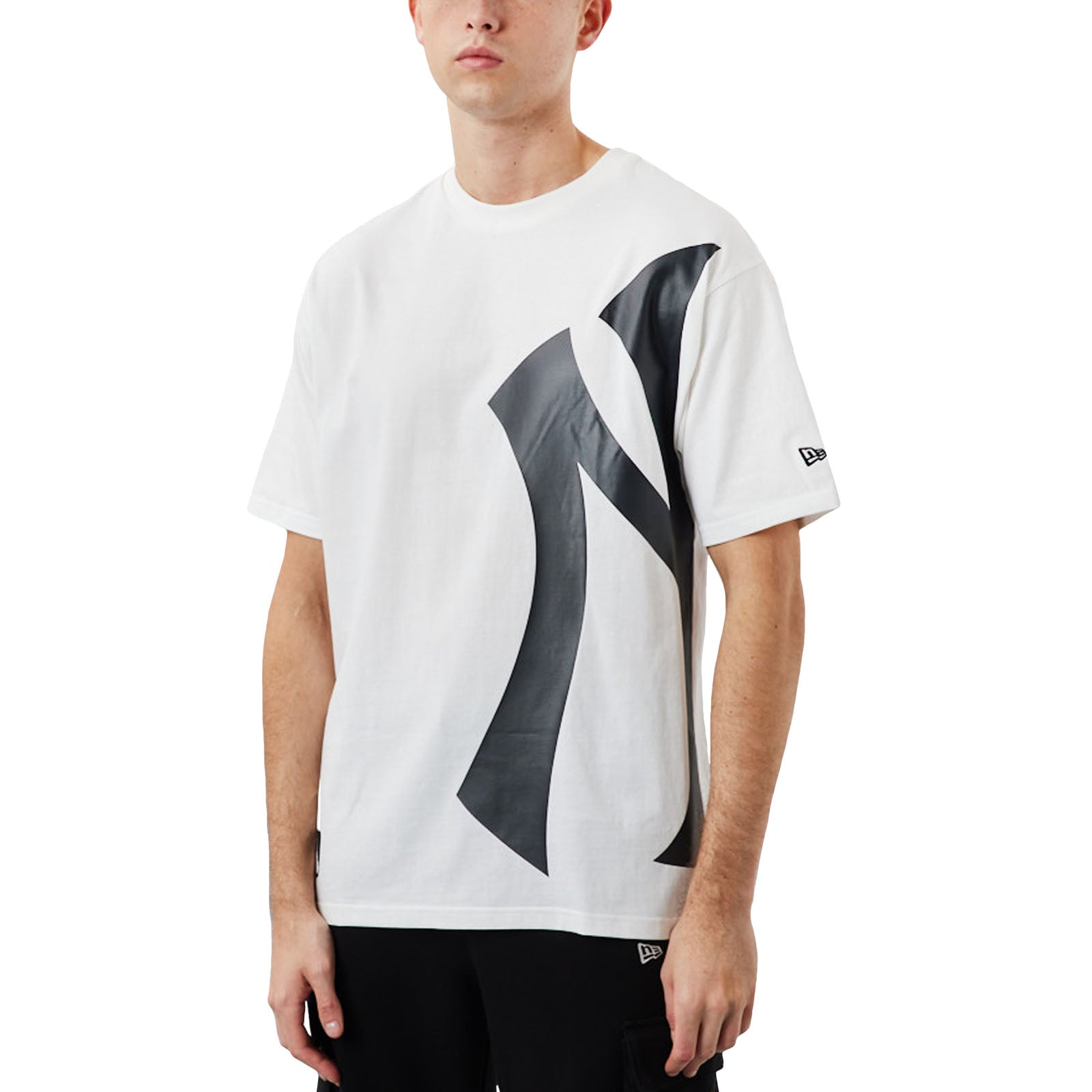 New Era Mens New York Yankees Half Logo Over Sized T-Shirt - White