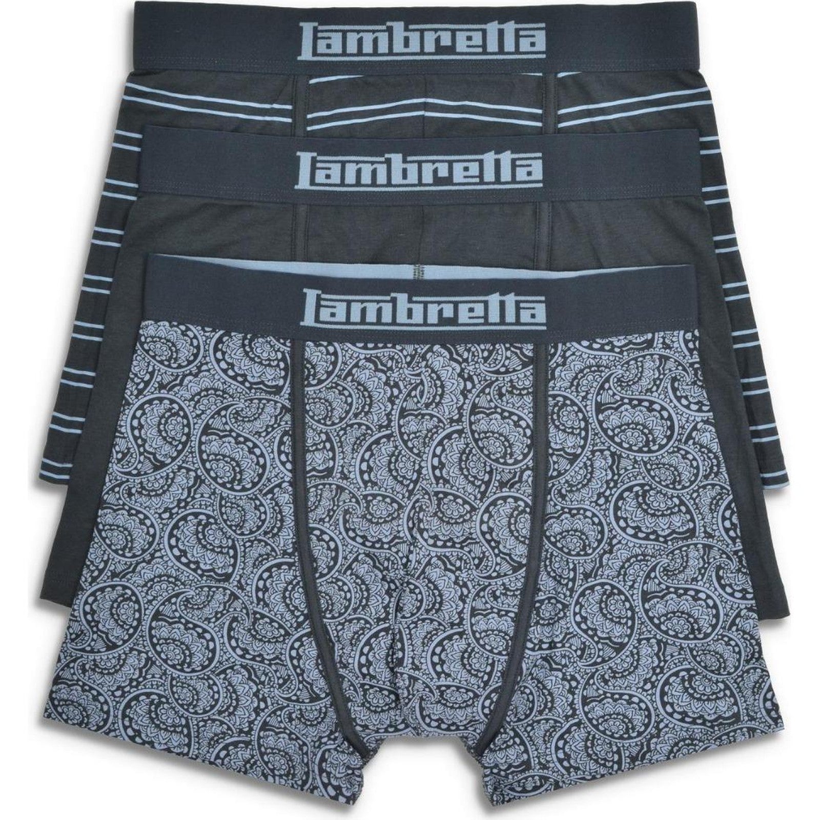 Lambretta Mens 3 Pack Paisley & Stripe Boxer Shorts