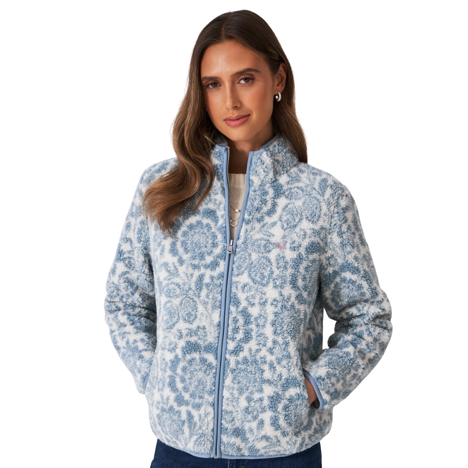 Crew Clothing Womens Boucle Bonded Zip Through Half Zip Fleece