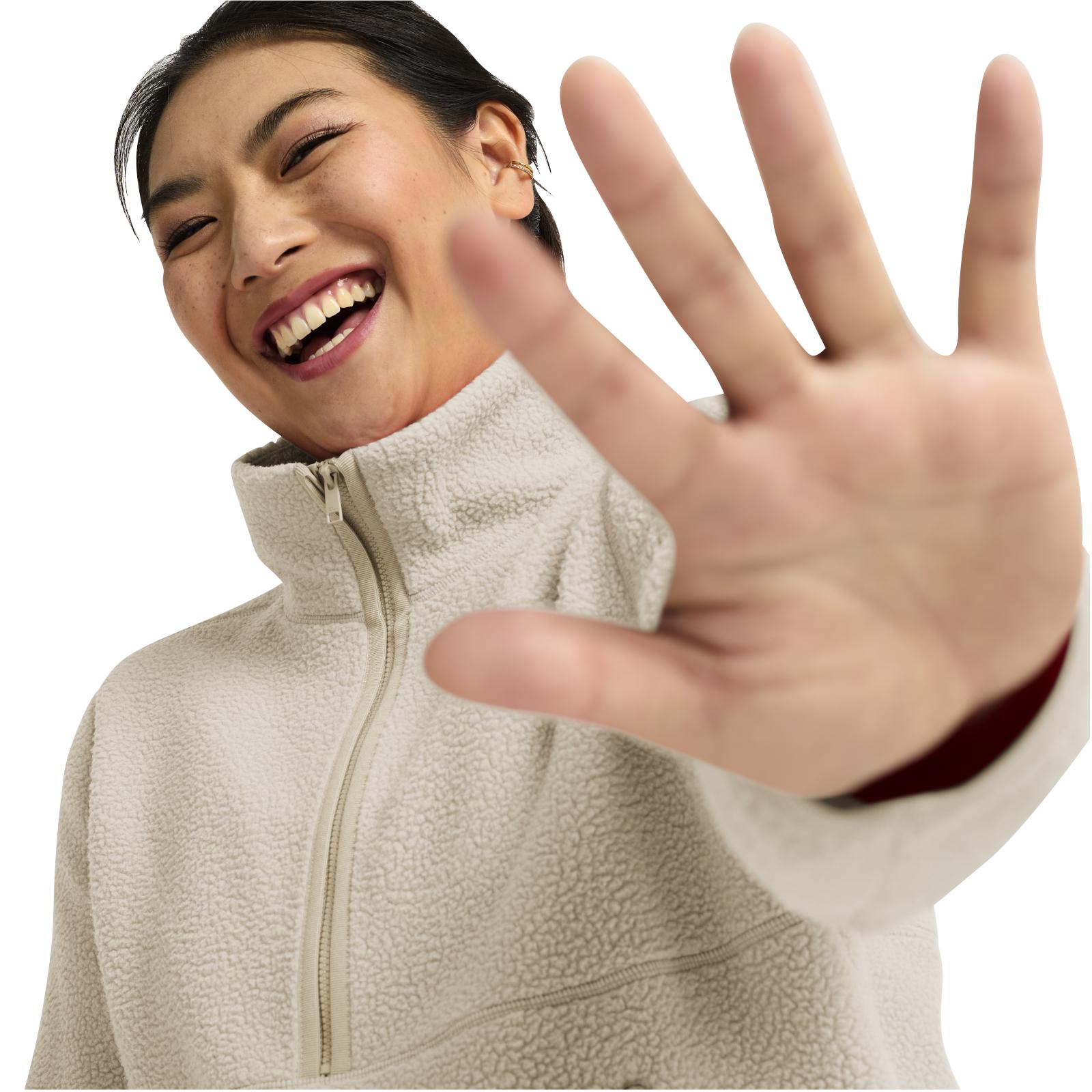 The LITE CURL HZ W will accompany you with outright ease on spontaneous adventures. This midlayer features a casual fit, giving you uninhibited freedom of movement, and softly textured fleece outer material, perfect for cool weather. The tall collar, the half zip and the elastic cuffs combine practical comfort with a casual look. With its elaborate details such as the side pockets and the mesh liner, it will provide you with just the right degree of functionality for your active time under the open sky.