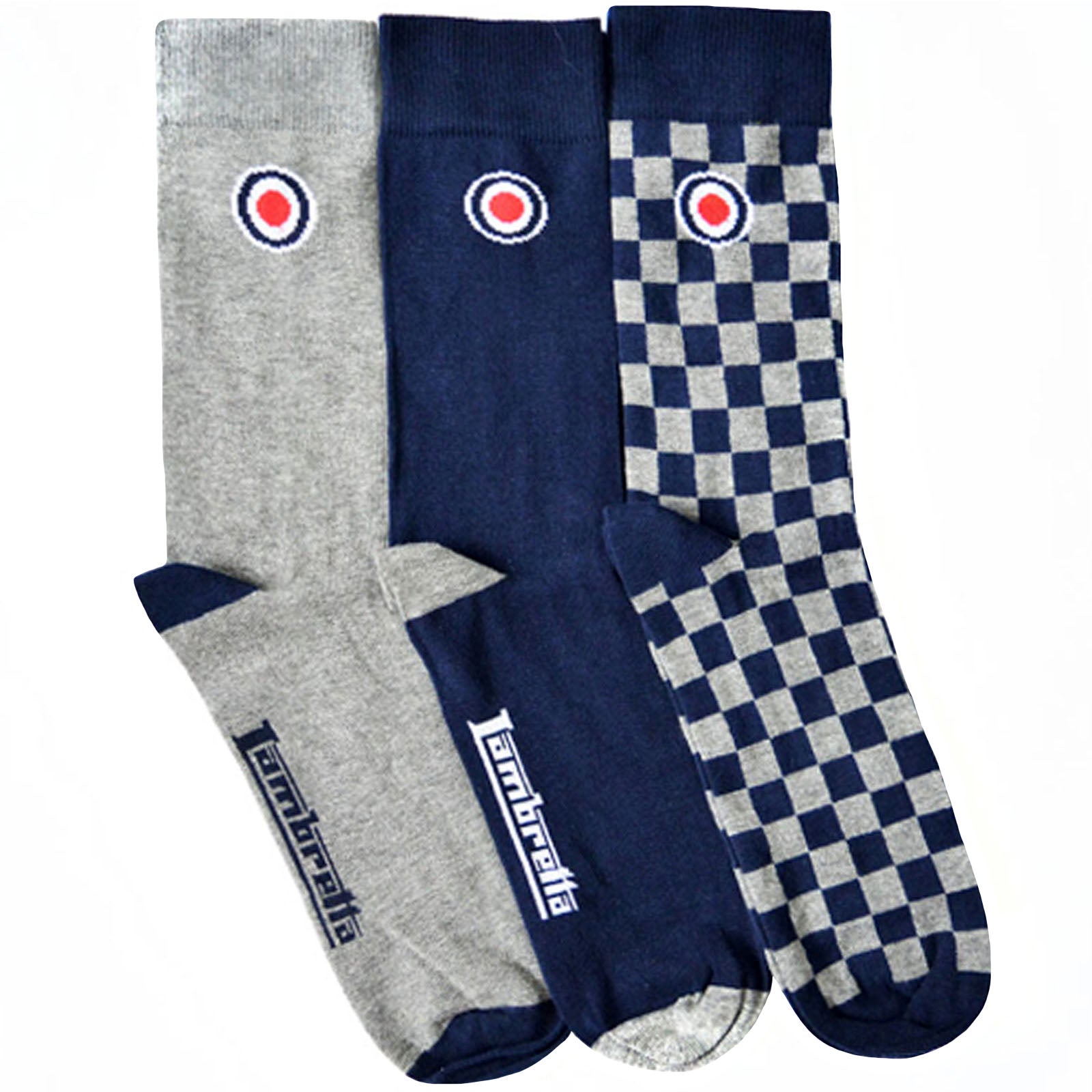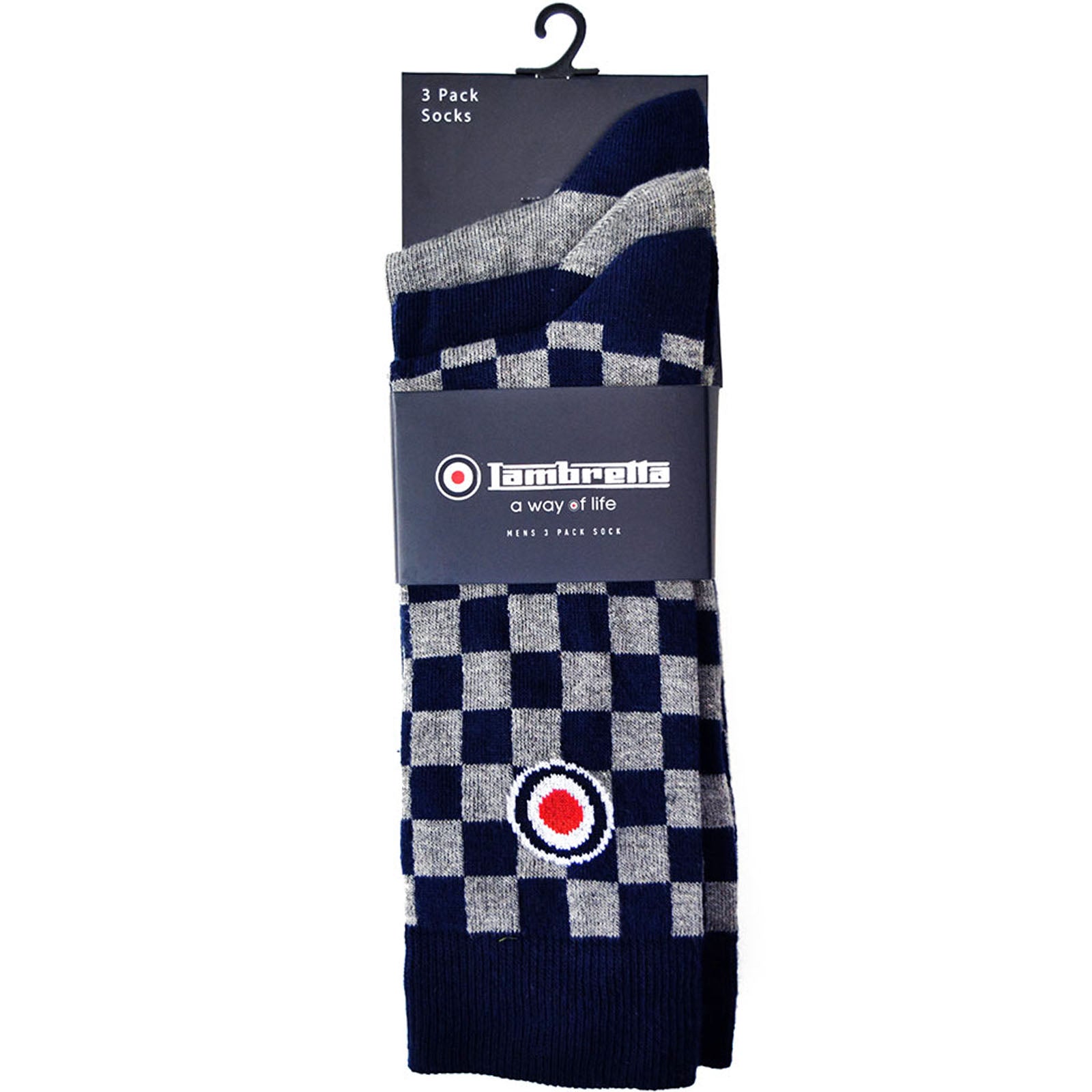 Lambretta Mens 3 Pack Checkered Crew Length Cotton Socks - Blue - 6-11 UK