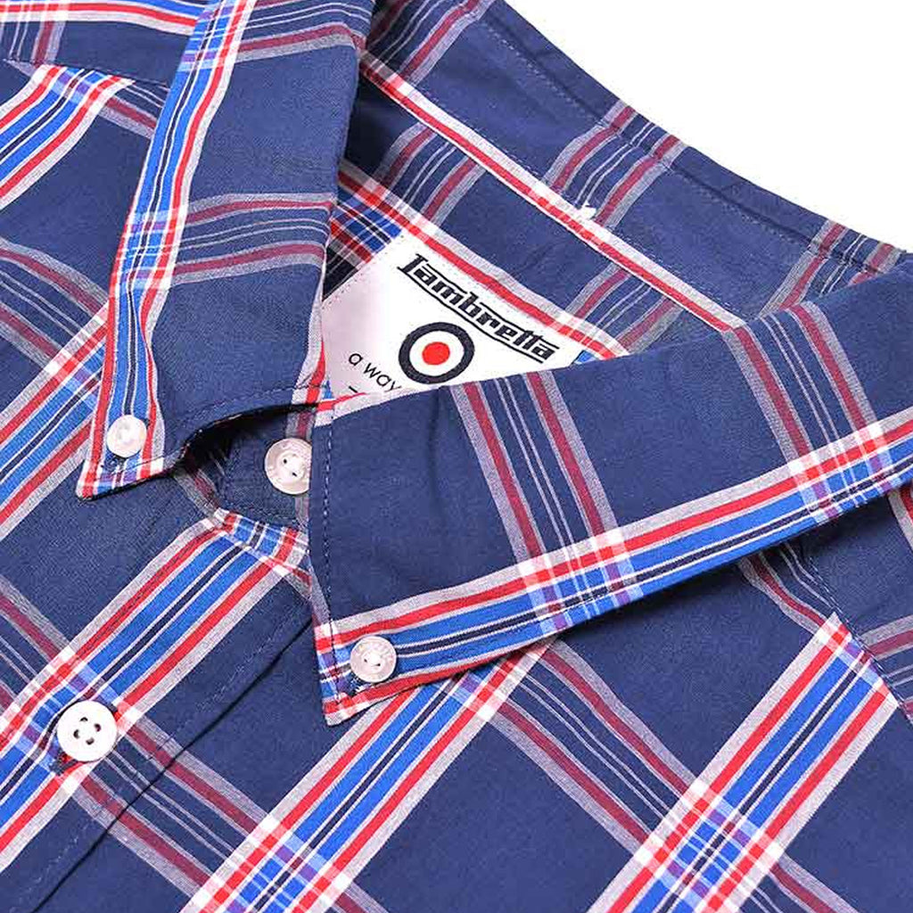Lambretta Mens Cotton Check Shirt - Navy/Red