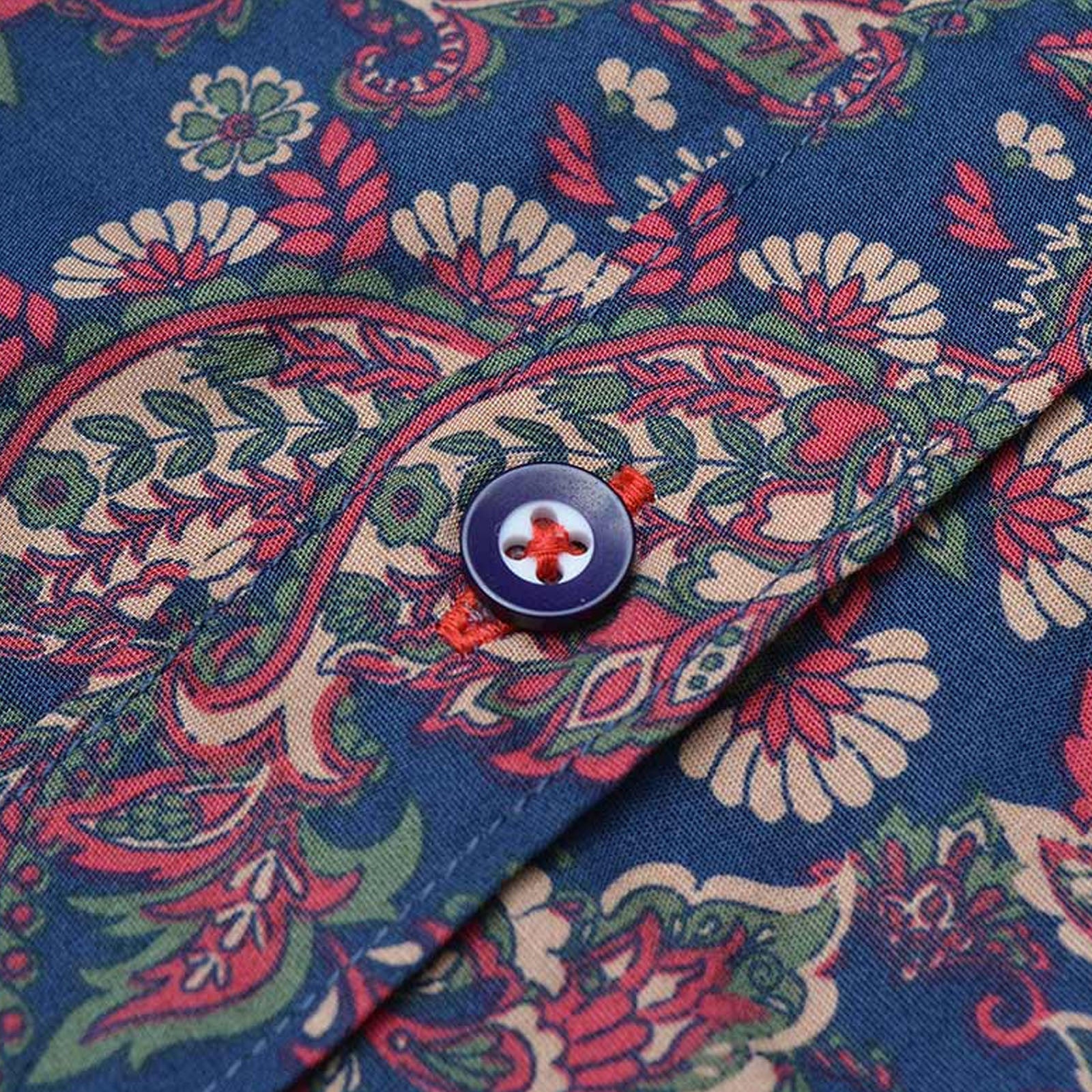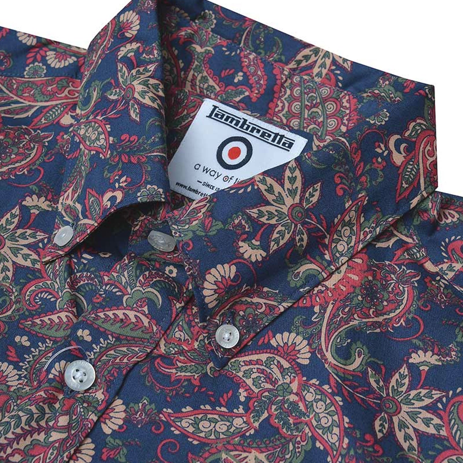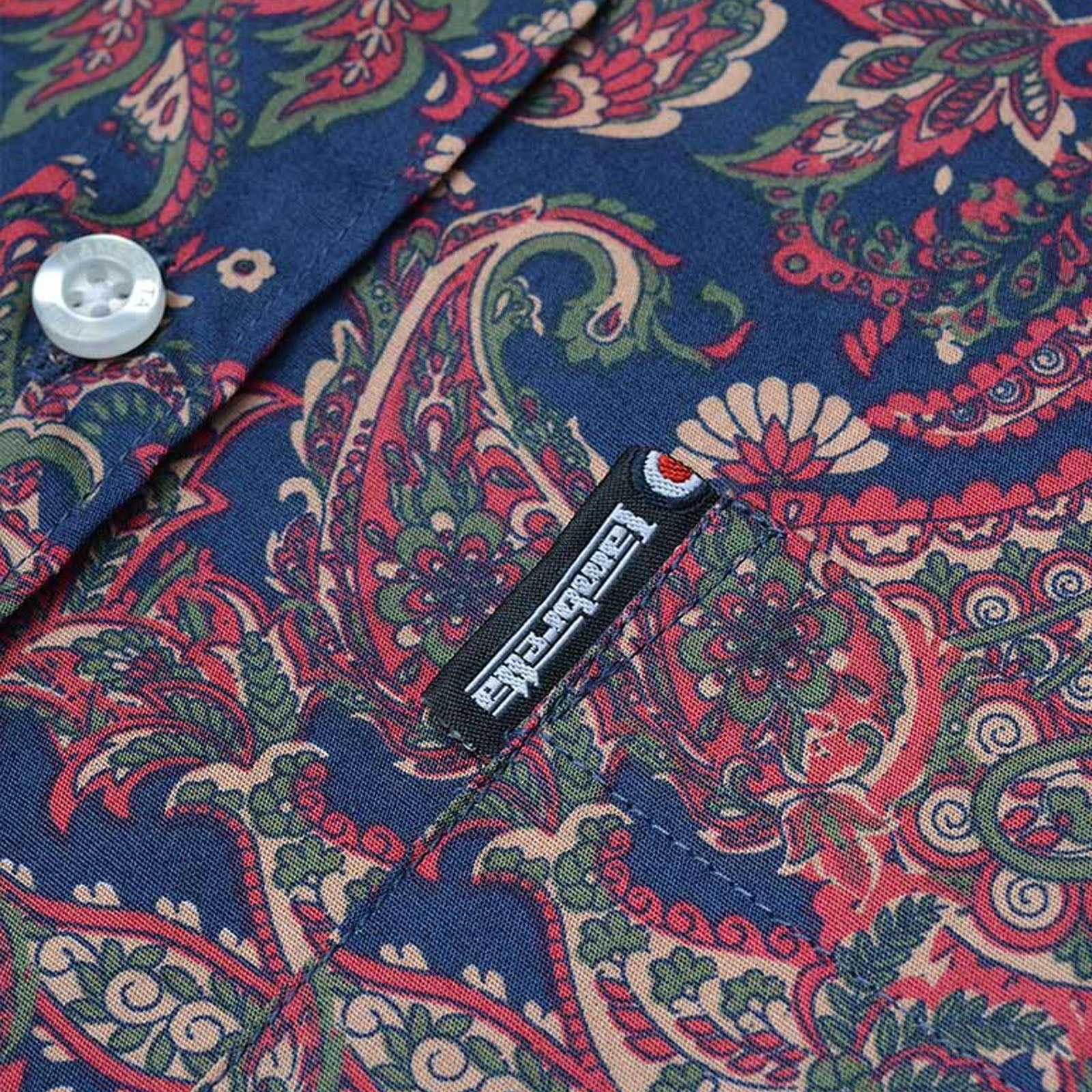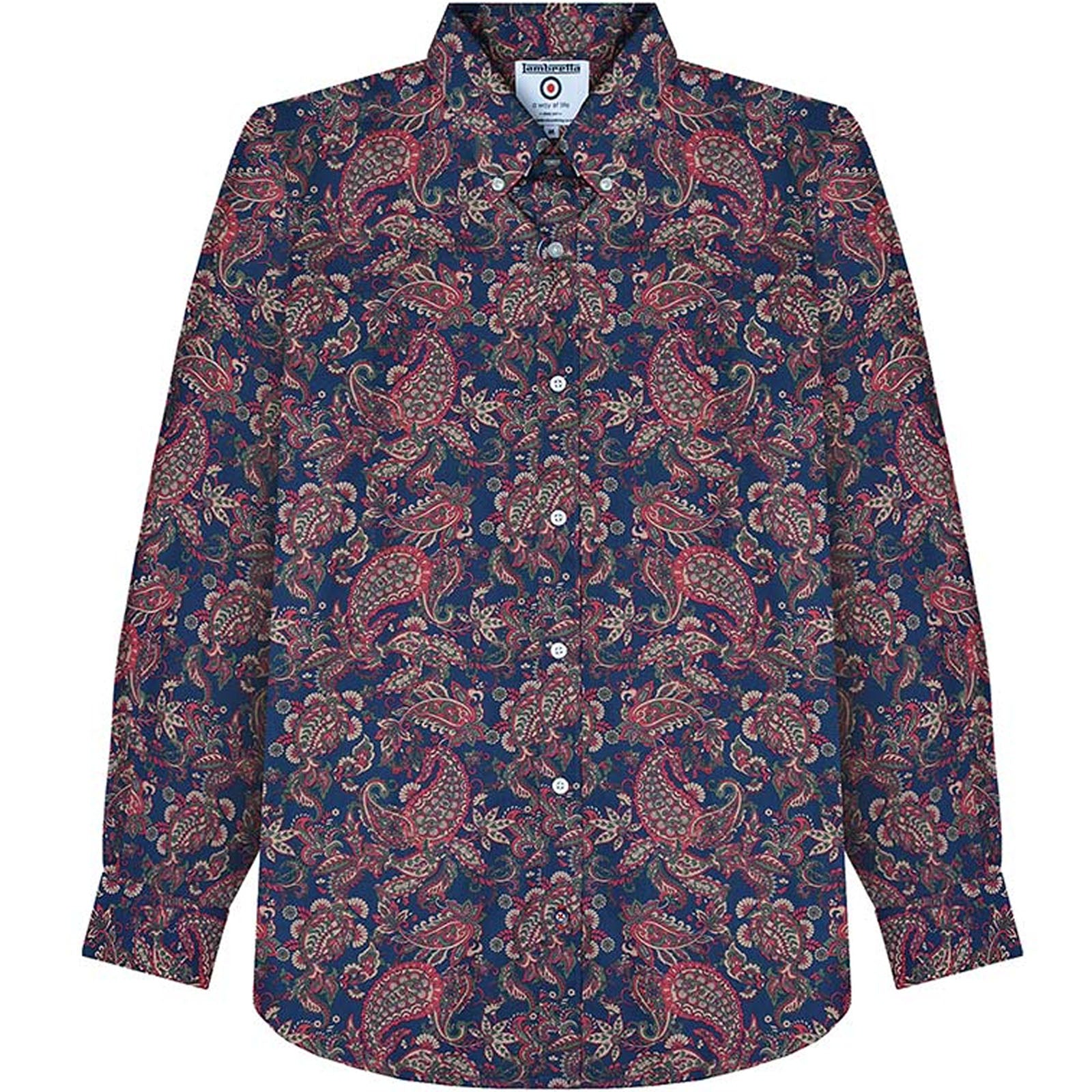 Lambretta Mens Paisley Long Sleeve Button Down Collar Shirt - Navy/Red