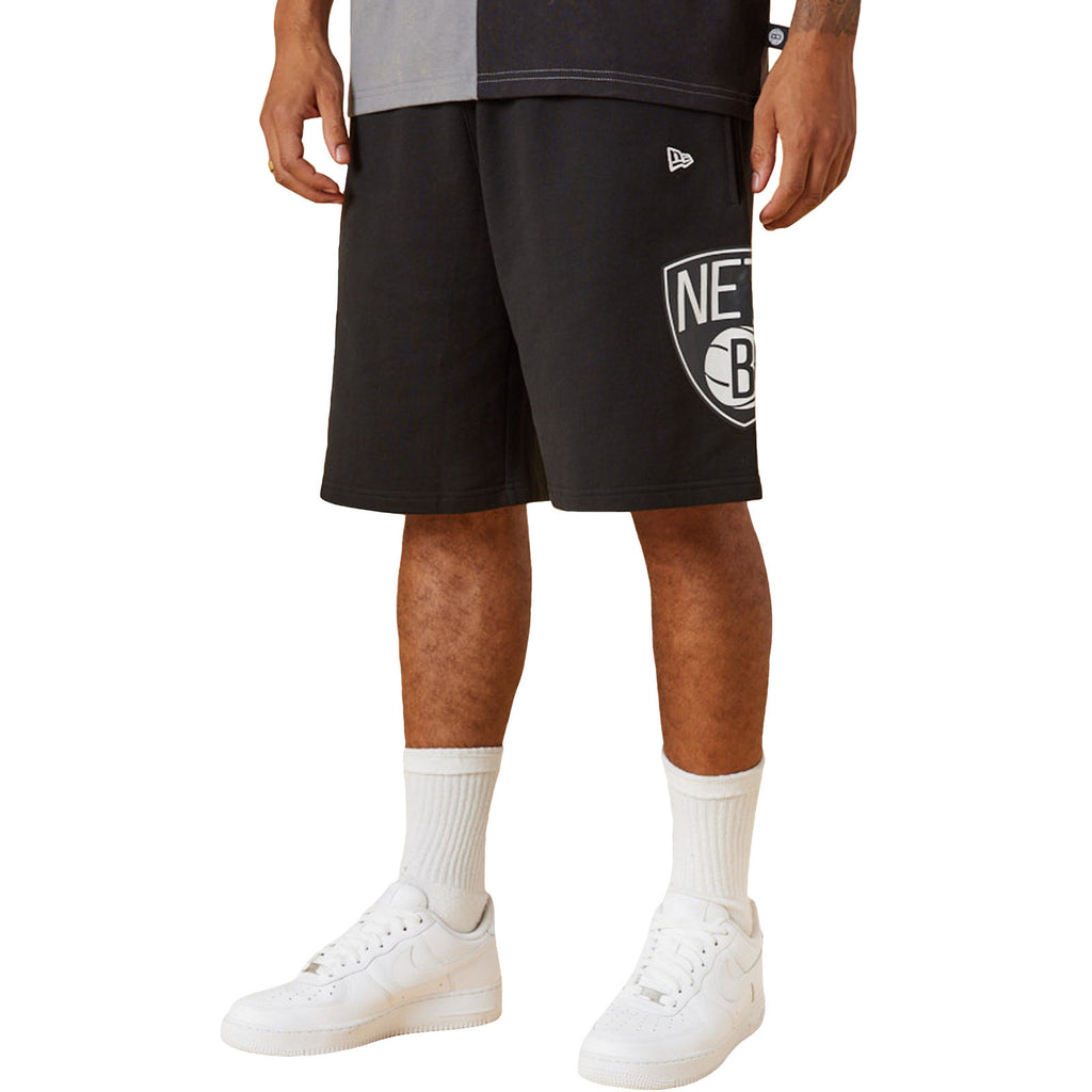 New Era Mens Brooklyn Nets Washed Team Logo Sweat Shorts - Black