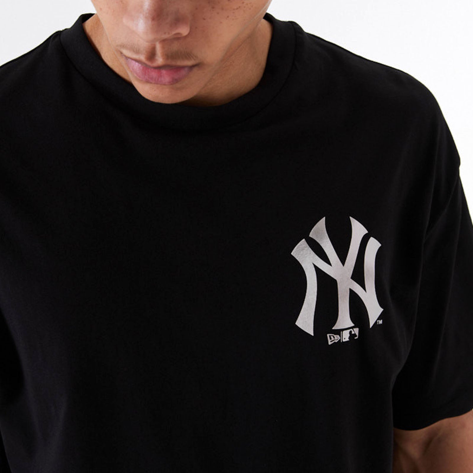 New Era Mens New York Yankees MLB Oversized Team Logo T-Shirt - Black